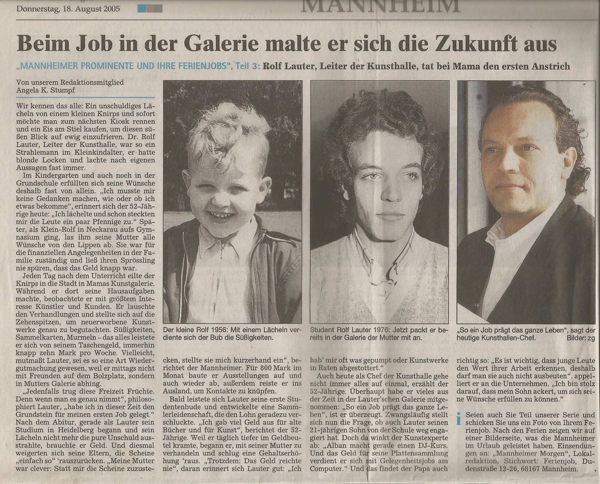 Rolf Lauter: Director Kunsthalle Mannheim, in conversation with Angela K. Stumpf, Mannheimer Morgen, August 18, 2005